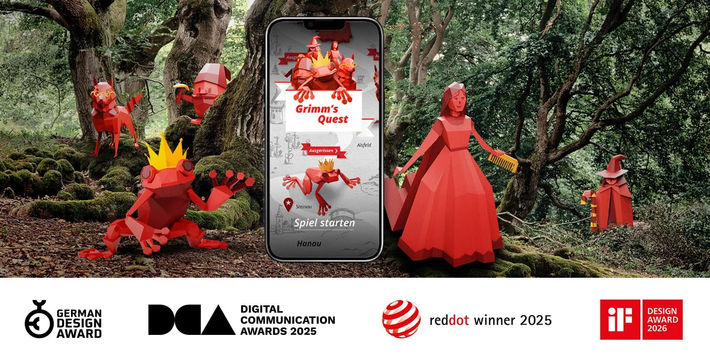 Mit „Grimm’s Quest“ — einer browserbasierten Gamification, die Grimms Märchen interaktiv erfahrbar macht. Spieler:innen begegnen liebevollen 3D-Papercraft-Figuren, tauchen in märchenhafte Minigames ein und folgen virtuell der realen Märchenstraße. Eingebettet auf germany.travel und begleitet von zielgerichteter Social-Media-Kommunikation wurde daraus ein internationales Reise-Highlight.